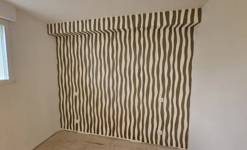 Pose de papier peint à raccord à motifs ondulés à Rennes