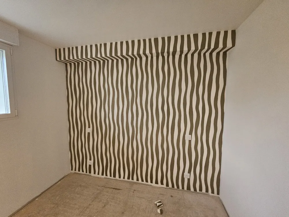 Pose de papier peint à raccord à motifs ondulés à Rennes